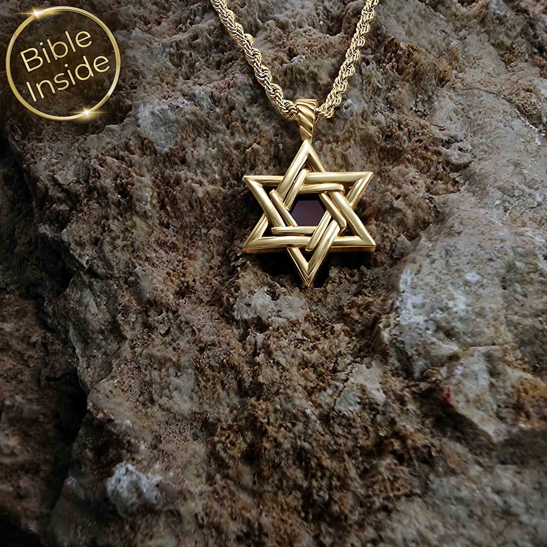 מתנה לראש השנה - שרשרת מגן דוד ננו תנ"ך לגברים - דגם צבר
