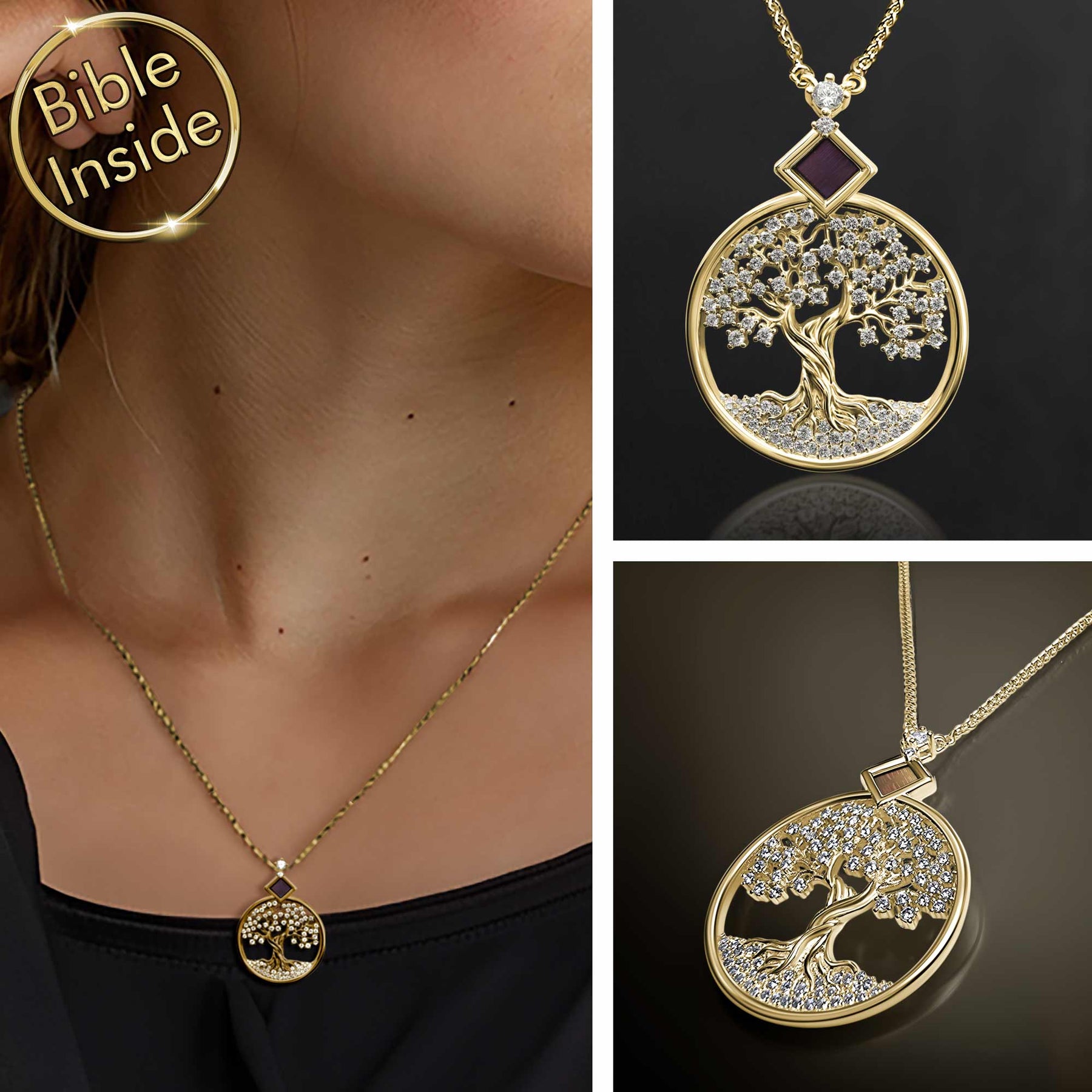 שרשרת זהב לאישה עץ החיים עם ננו תנ"ך מלא - דגם ניצוצות החיים