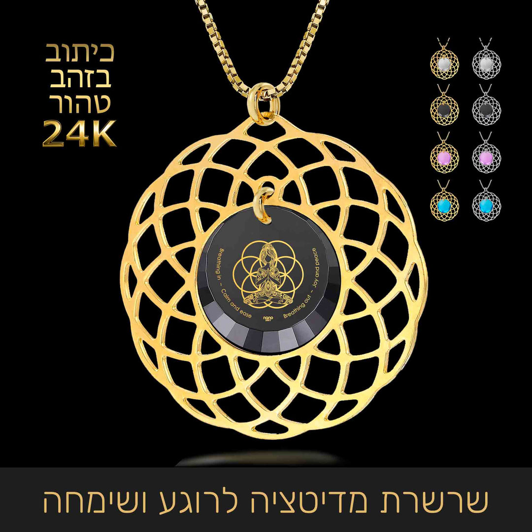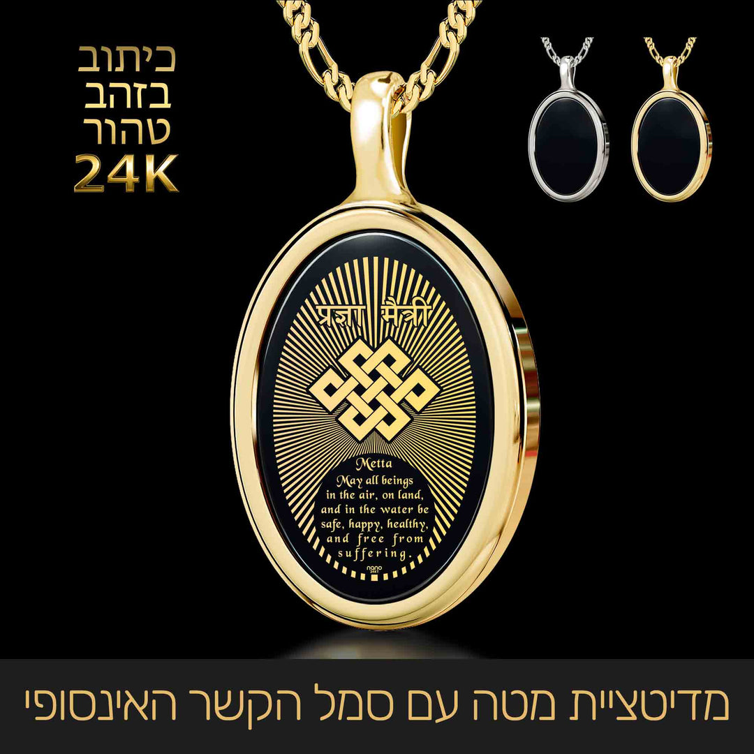 אנו משתמשים בזהב 24 קראט לחריטת המשפטים, מה שמבטיח ברק ועמידות לאורך זמן. הזהב הטהור מוסיף נופך של יוקרה ואיכות לכל תכשיט.