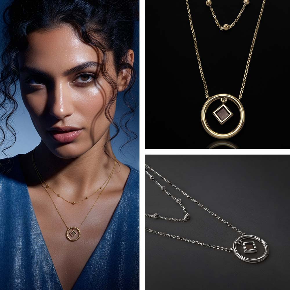 זו שרשרת לנשים שאוהבות כשסיפור גדול מסתתר בתוך מחווה קטנה. שתי השורות מספרות על היום‑יום המלא תנועה, והמעגל עם הננו תנך מזכיר שיש באמצע כל זה מרכז פנימי שלא זז. מי שמביטה מבחוץ תראה תכשיט אלגנטי, מי שיודעת מה בפנים תרגיש מין סוד אישי שנח על החזה.