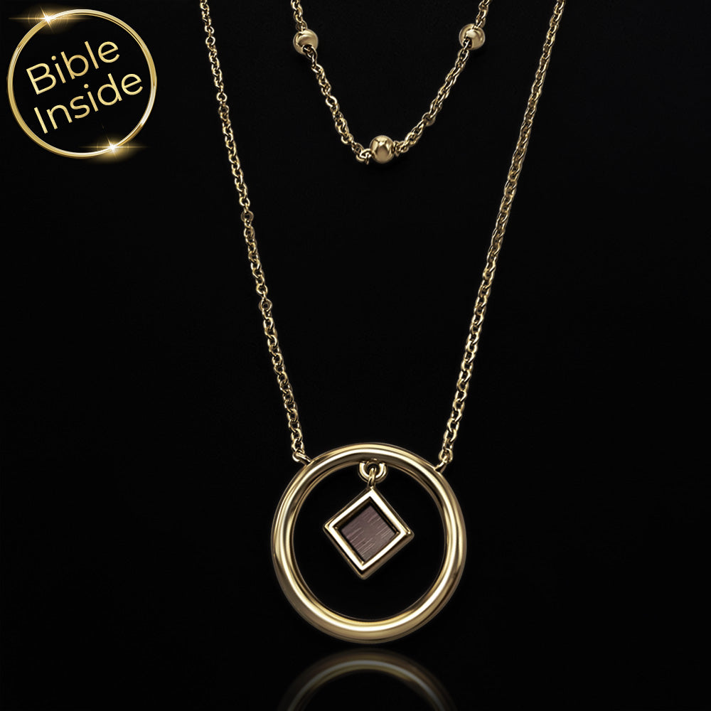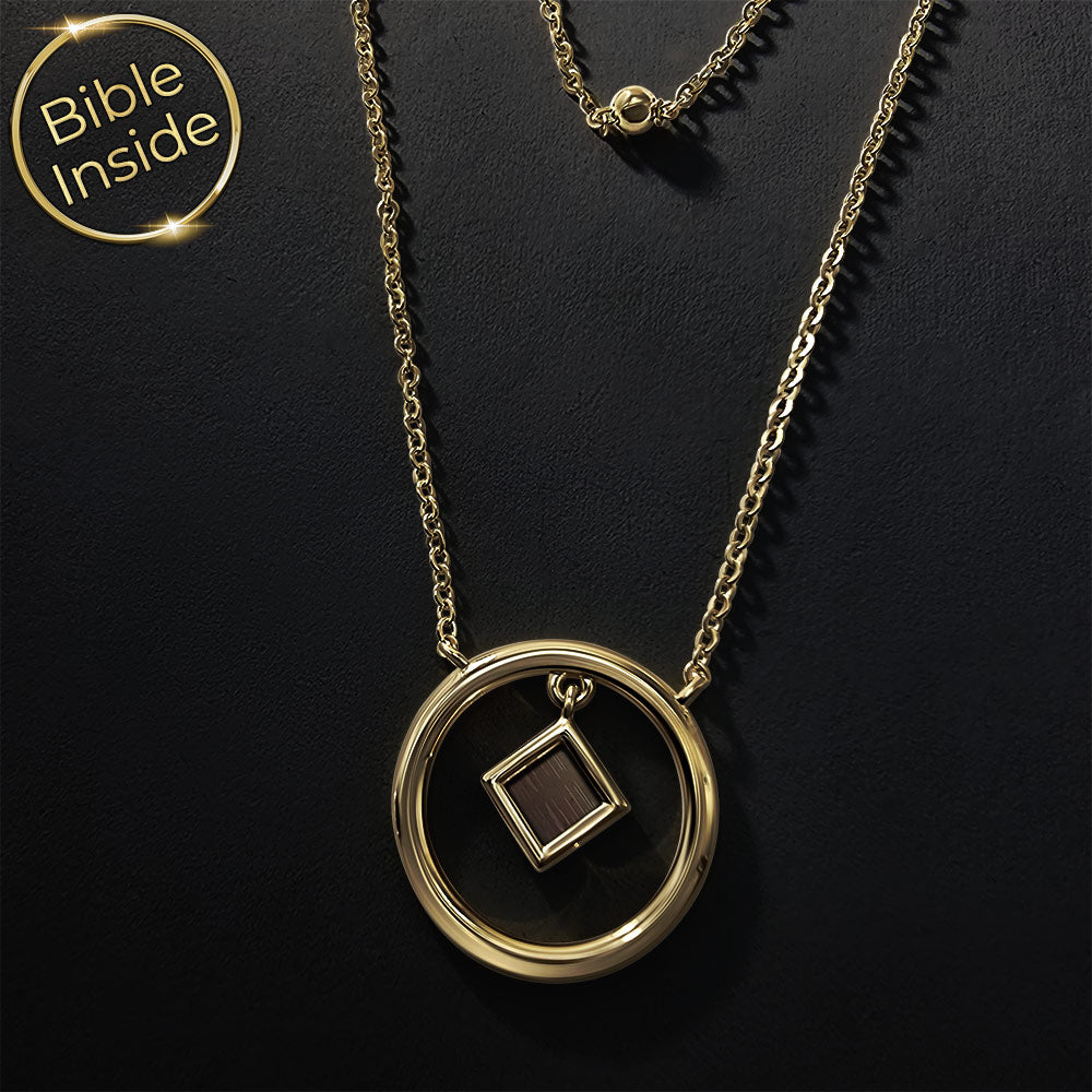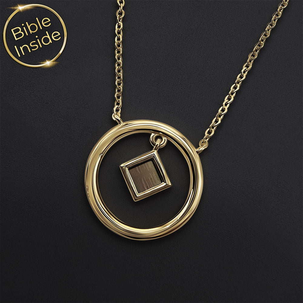 שרשרת תנך בזהב עם תליון עיגול וריבוע קטן של כל הספרים