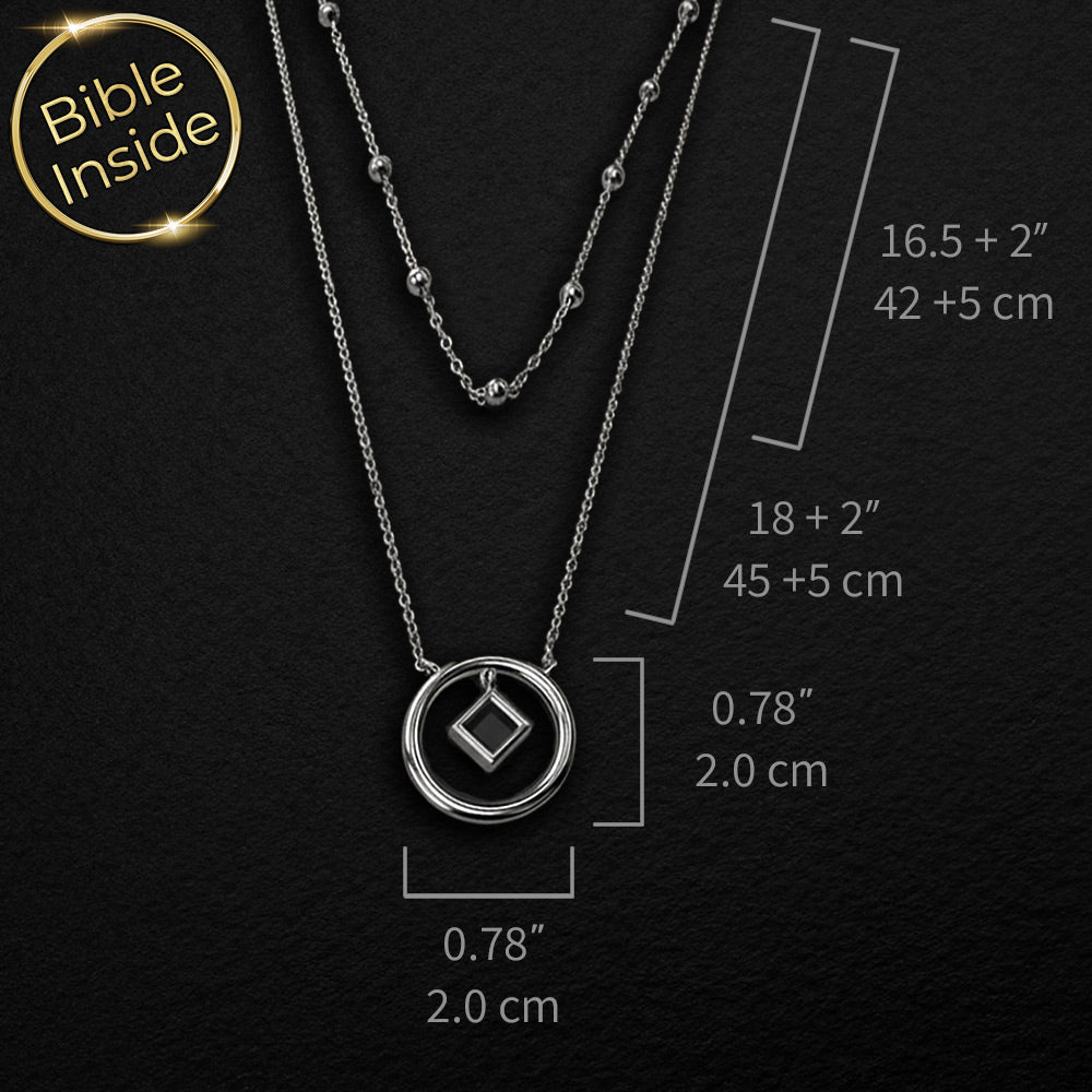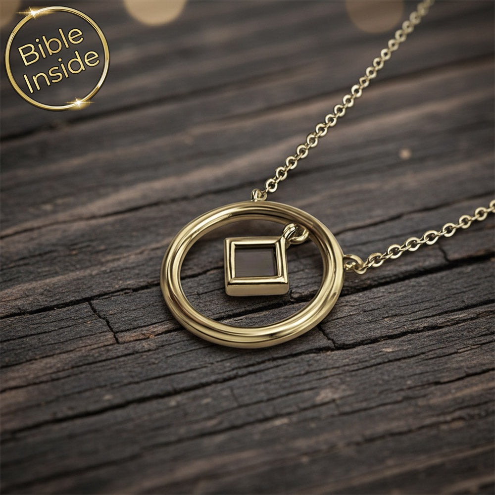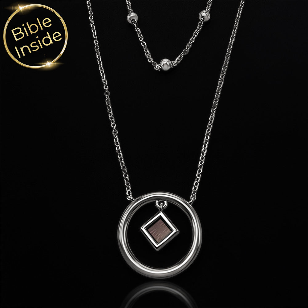 שרשרת תנך זו נראית כמו שני שבילים עדינים שמקיפים את הצוואר ונפגשים בתליון עגול קטן. באמצע המעגל מתנדנד ריבוע ננו תנך זעיר, שמחזיק בתוכו את כל ספרי התנ"ך, כולל ספר תהילים, כאילו מישהו כיווץ ספרייה שלמה לנקודת אור אחת.