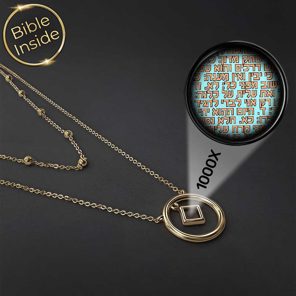 שרשרת תנך יוקרתית עם טבעת זהב וריבוע כתבי תנך בפנים