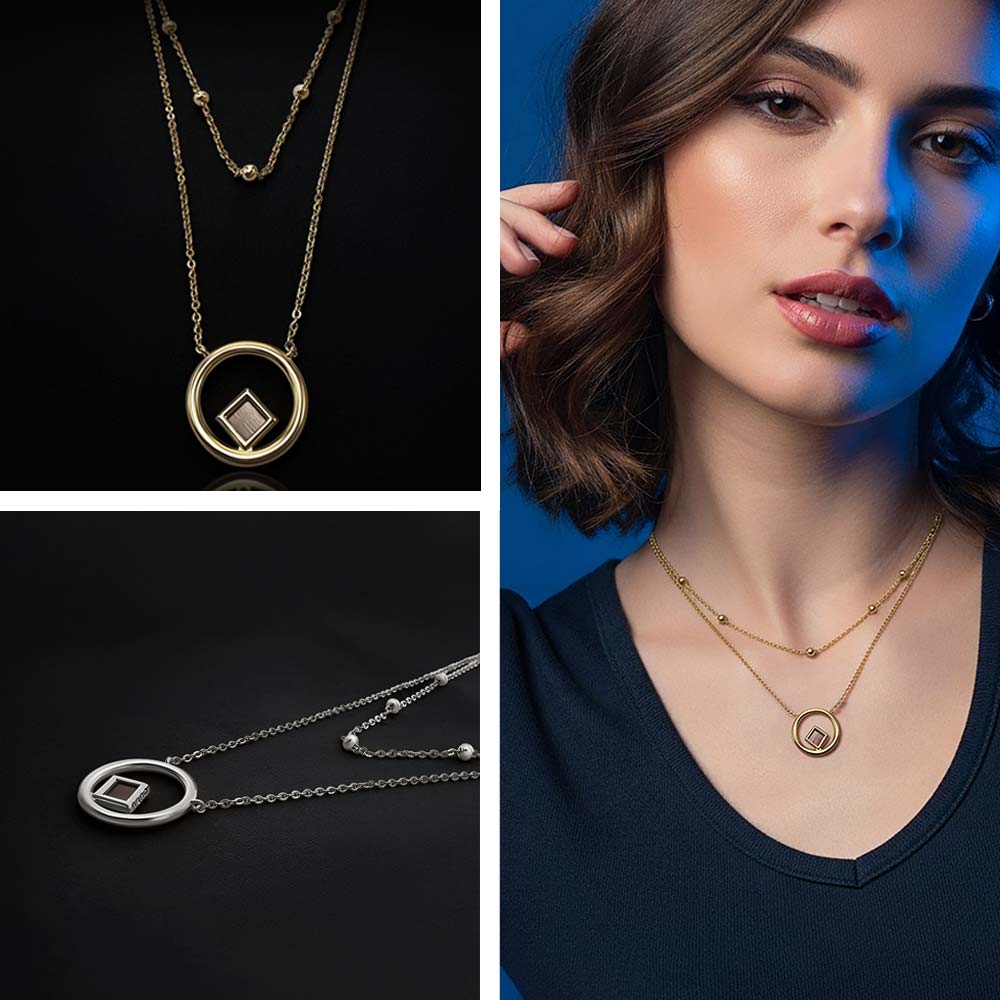 זו שרשרת לנשים שאוהבות כשסיפור גדול מסתתר בתוך מחווה קטנה. שתי השורות מספרות על היום‑יום המלא תנועה, והמעגל עם הננו תנך מזכיר שיש באמצע כל זה מרכז פנימי שלא זז. מי שמביטה מבחוץ תראה תכשיט אלגנטי, מי שיודעת מה בפנים תרגיש מין סוד אישי שנח על החזה.