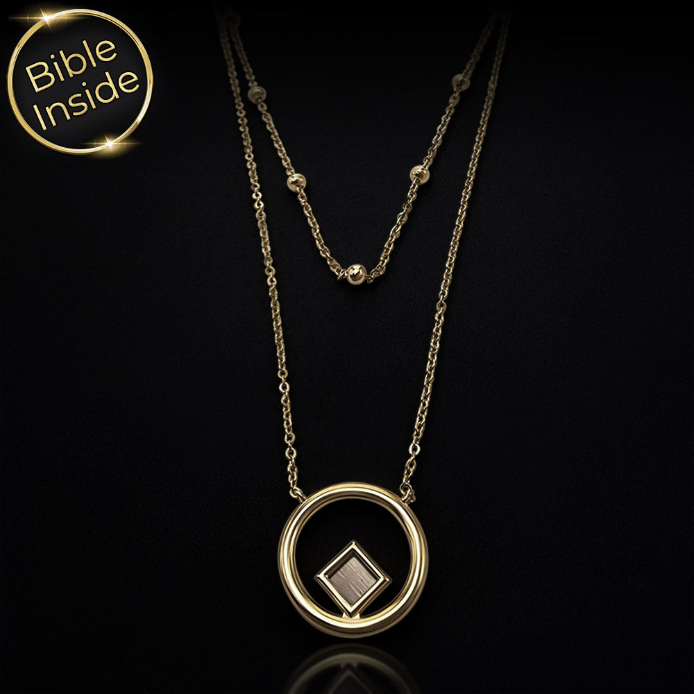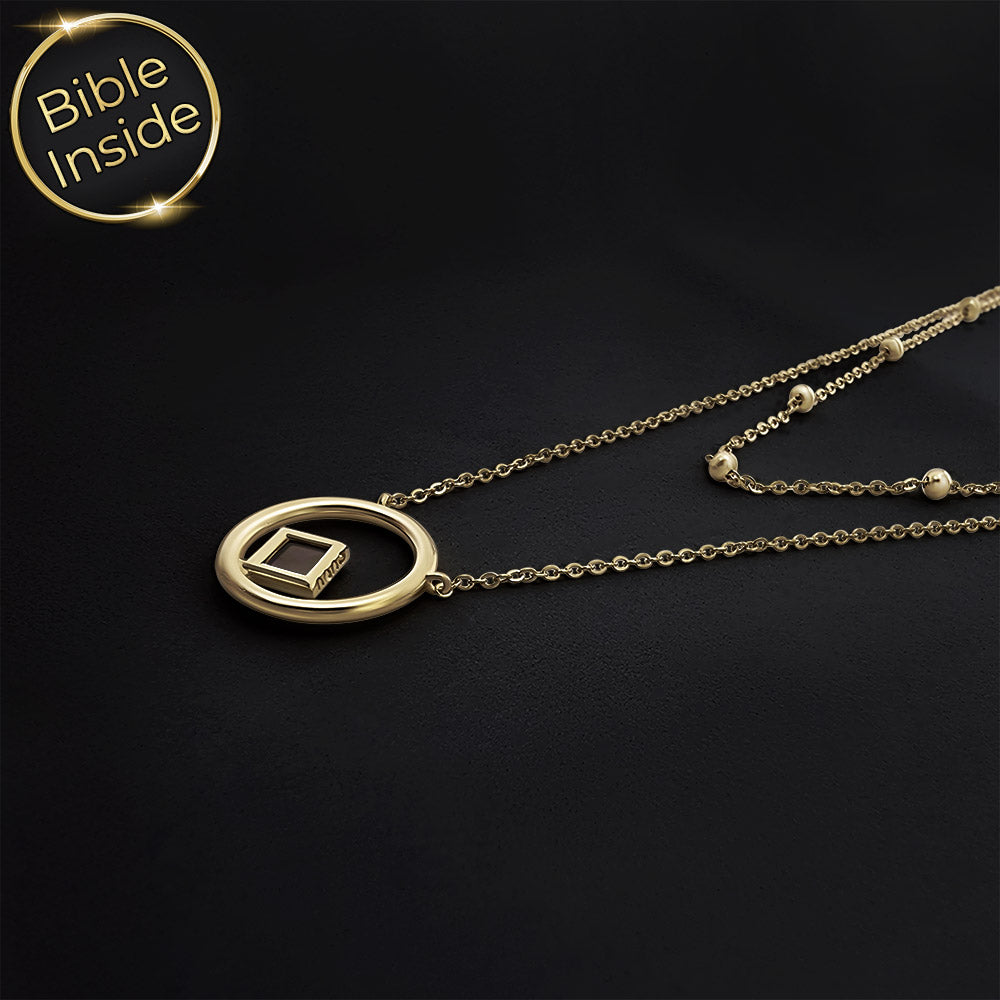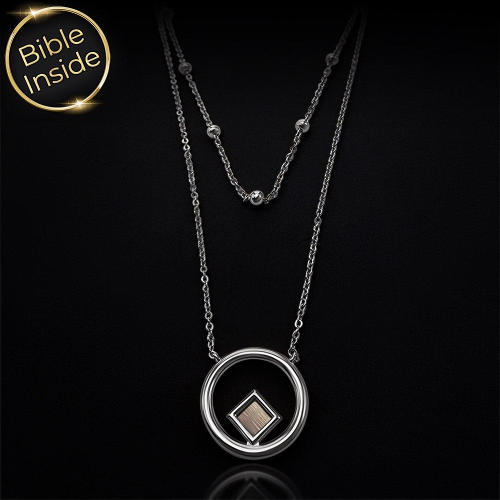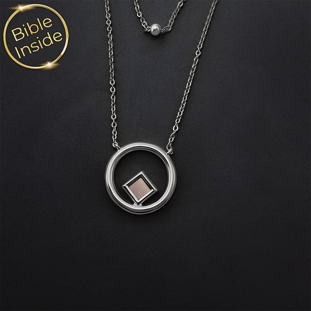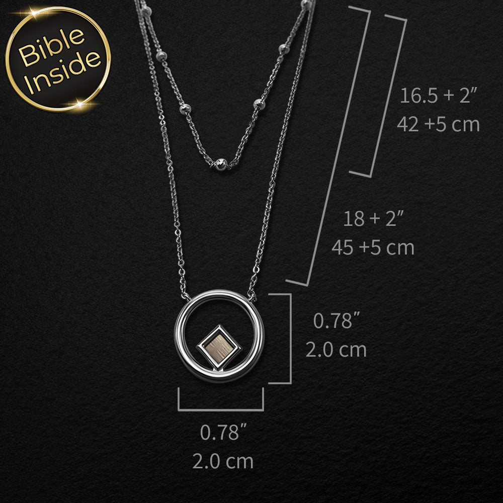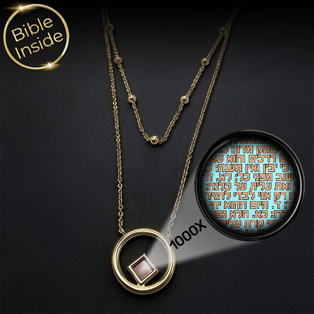 שרשרת תנך זו נראית כמו שני שבילים עדינים שמקיפים את הצוואר ונפגשים בתליון עגול קטן. באמצע המעגל מתנדנד ריבוע ננו תנך זעיר, שמחזיק בתוכו את כל ספרי התנ"ך, כולל ספר תהילים, כאילו מישהו כיווץ ספרייה שלמה לנקודת אור אחת.