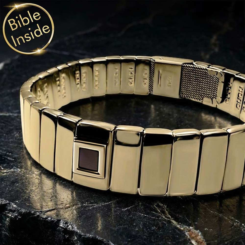 תכשיט בפיניש זהב מרהיב - צמיד לגבר המשלב את פלא הטכנולוגיה של ננו תנ"ך. תכשיט ייחודי זה הוא מתנה מושלמת לכל גבר שמעריך עיצוב מודרני ומשמעות רוחנית. השבב הזעיר, בגודל של 0.5 ס"מ בלבד, מכיל את כל ספרי התנ"ך החקוקים בדיוק מדהים. ניתן לראות את הטקסט המלא רק באמצעות מיקרוסקופ מטלורגי בהגדלה של פי 1000.