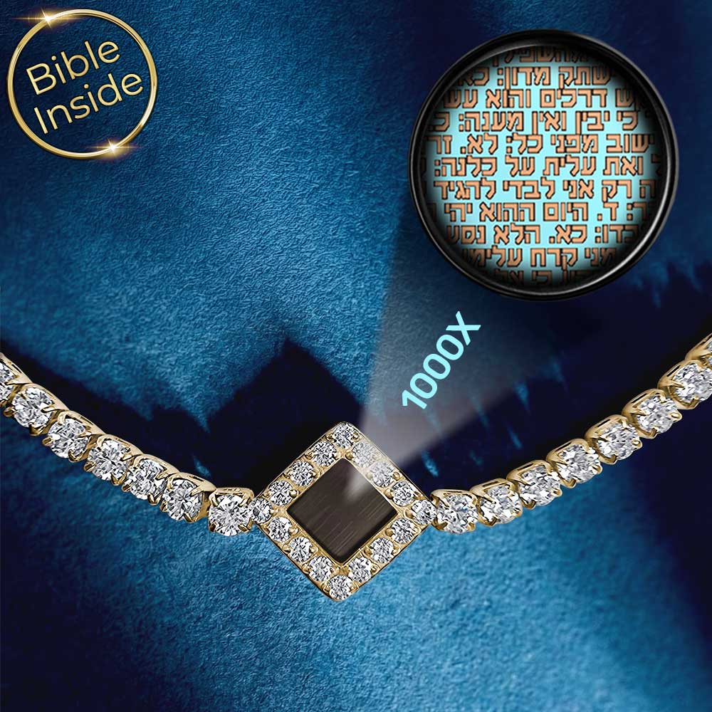 כל אבן קטנה בצמיד זה זוהרת ומשקפת את הטהרות והיופי שבמסורת שלנו. הצמיד עם ננו תנך הוא לא רק תכשיט מהמם - זהו חיבור אמיתי לשורשים, לחוכמה העתיקה וזיכרון לאמונה. השבב הקטן, בגודל חצי סנטימטר בלבד, מכיל את התנ"ך כולו כולל ספר תהילים. האבנים המבריקות יוצרות מראה אלגנטי שמתאים לכל מעמד.