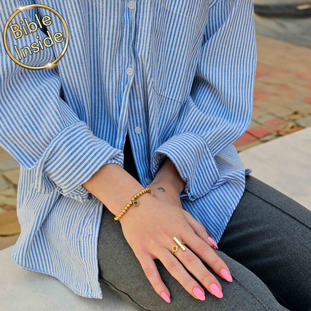 גלי את הקסם של צמיד ספר התנ"ך - חיבור מושלם בין מסורת לאופנה, המאפשר לך לשאת את חכמת הדורות בעיצוב מודרני ואלגנטי