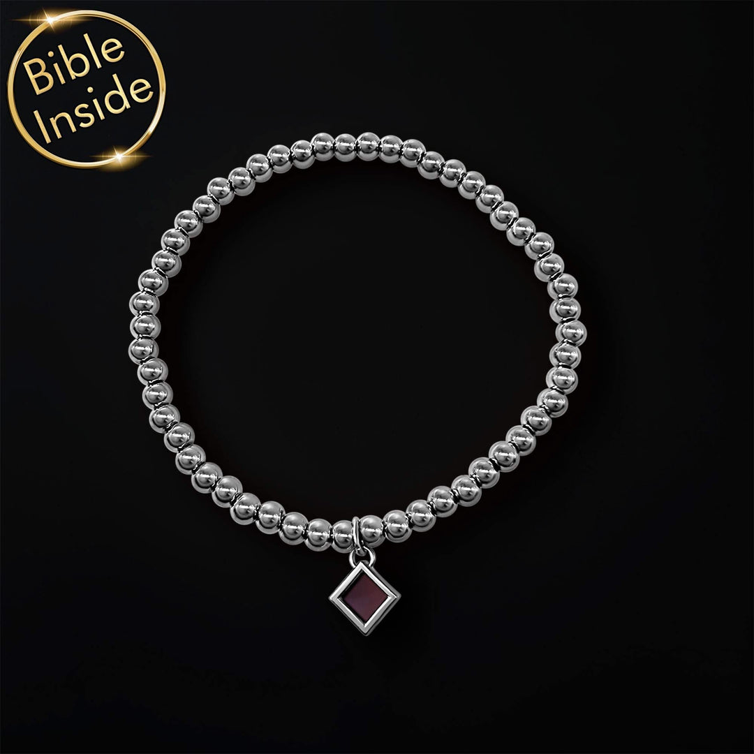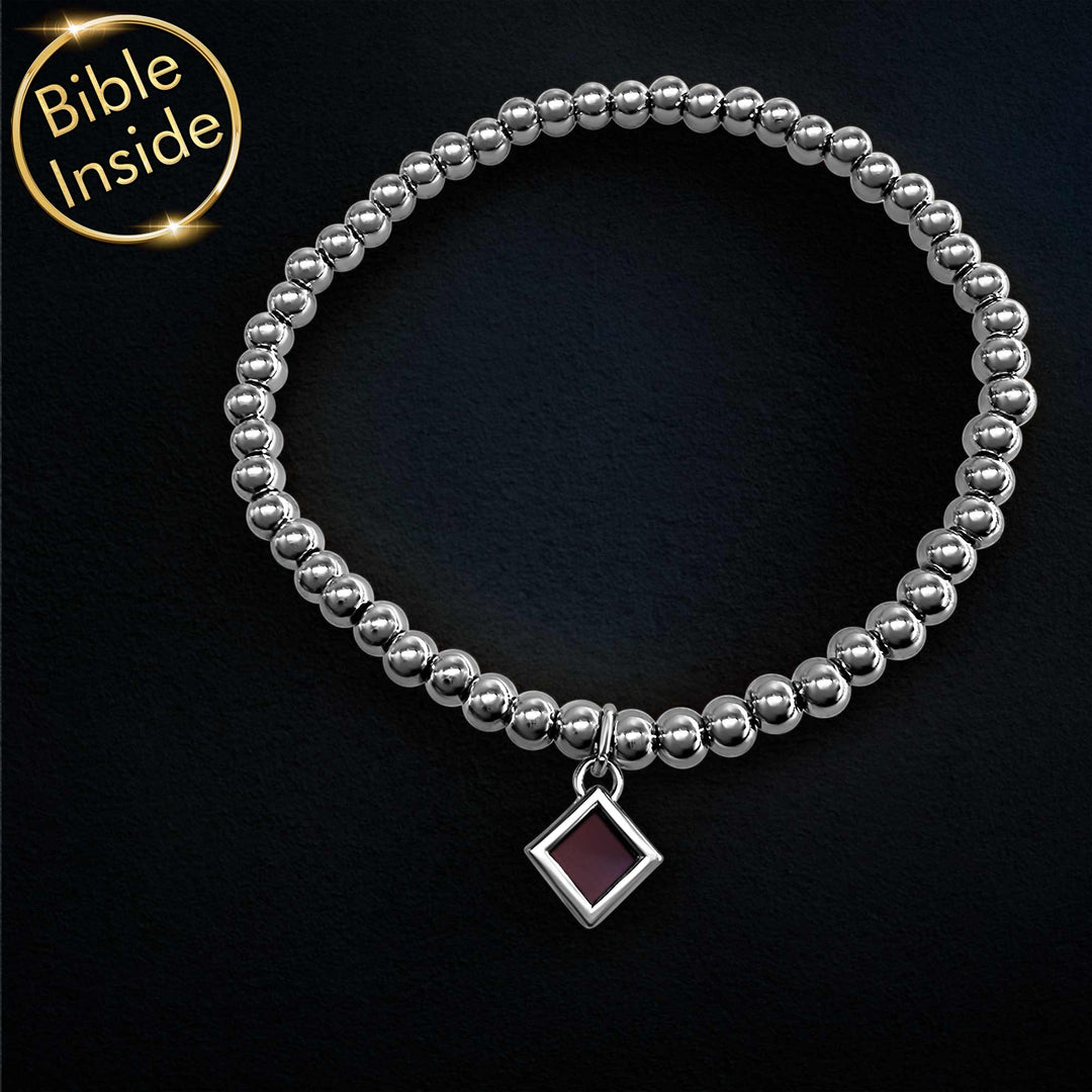 צמיד עם ספר התנ"ך שלנו משלב עיצוב חרוזים מודרני עם טכנולוגיית ננו מתקדמת. כל פסוקי התנ"ך חרוטים על שבב קטן בגודל 0.5 ס"מ, המשתלב בצורה מושלמת בעיצוב החרוזים.