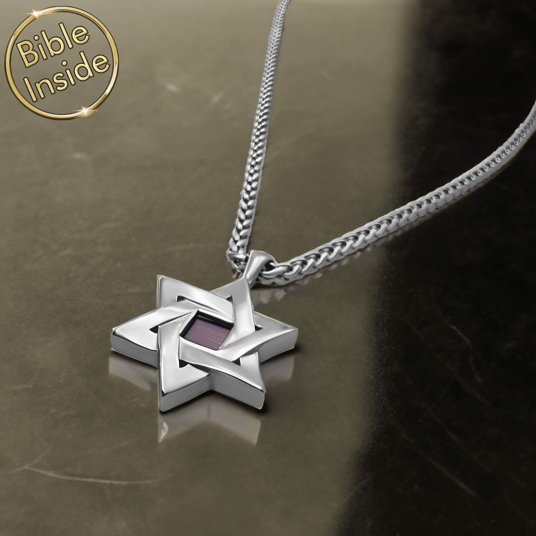שרשראות מגן דוד המעוצבות שלנו משלבות אומנות ורוחניות באופן מרהיב. כל השרשראות נושאות תליון מגן דוד מרשים המכיל בתוכו את התנ"ך כולו, כולל ספר תהילים, בשבב ננו תנ"ך ייחודי. הטכנולוגיה המתקדמת מאפשרת לחרוט את כל דפי התנ"ך על שבב קטן בגודל של 0.5 ס"מ בלבד.