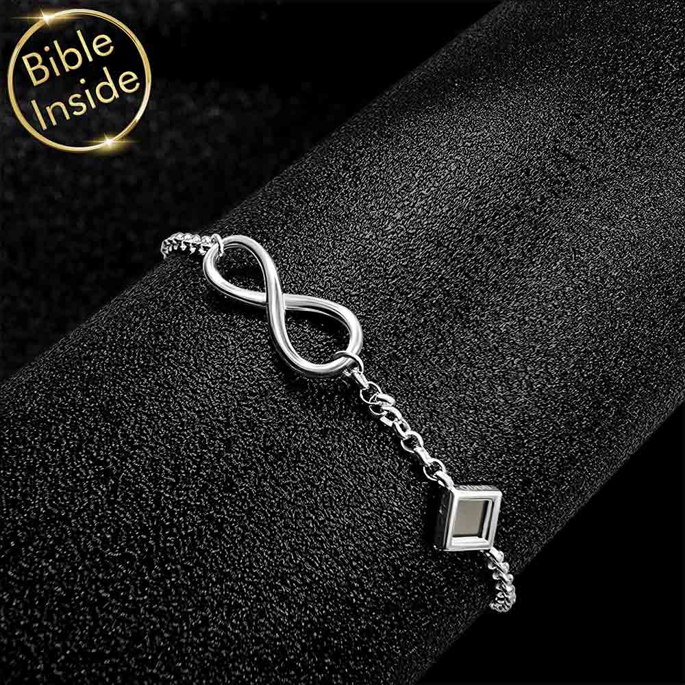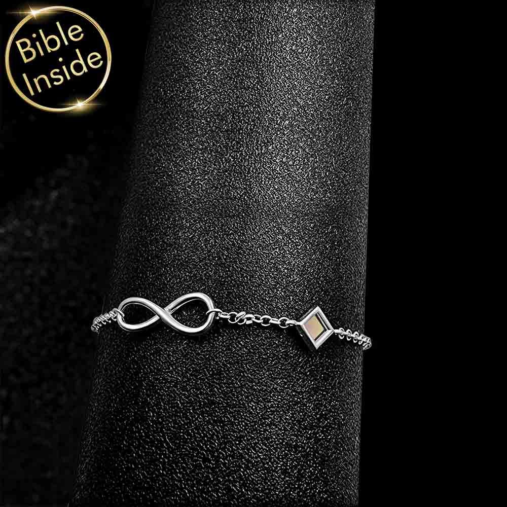 צמיד עדין ואלגנטי לבת מצווה שמשלב סמל אינסוף עם שבב ננו תנ"ך זעיר. סמל האינפיניטי מייצג קשר נצחי ואהבה ללא גבולות – בדיוק כמו החיבור למורשת ולשורשים. לצד הסמל נמצא שבב במידה של חצי סנטימטר בלבד, ובו חרוטים כל ספרי התנ"ך.