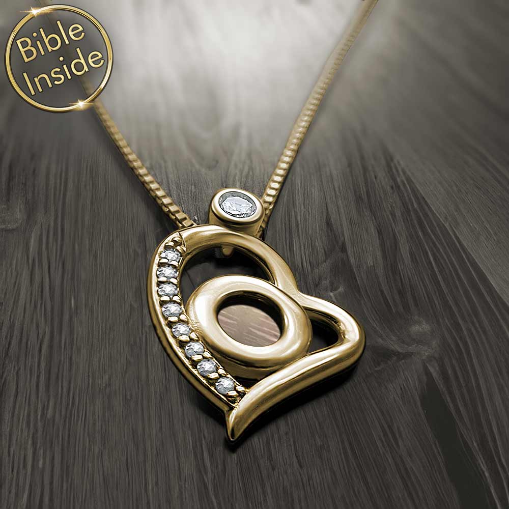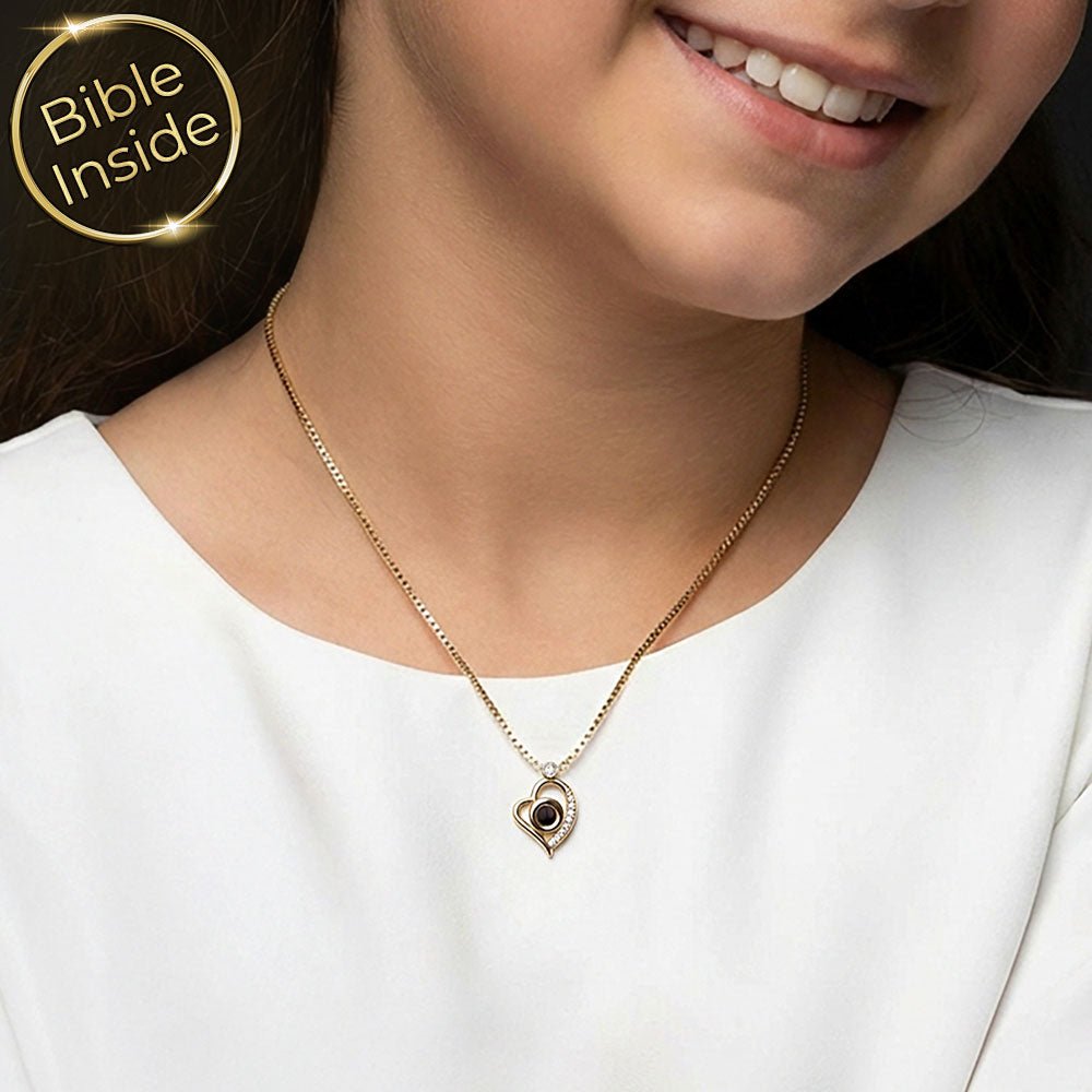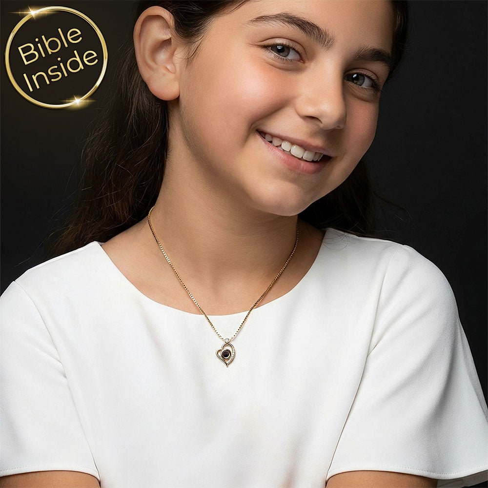 שרשרת בת מצווה – תליון לב נוצץ וננו תנ"ך - דגם זוהר הלב