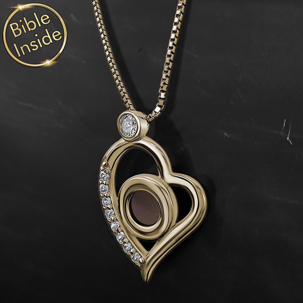 שרשרת בת מצווה בעיצוב לב עדין עם ננו תנ"ך משובץ במרכזה - כל 24 ספרי התנ"ך חרוטים על שבב זעיר. מתנה בעלת משמעות שתלווה את הילדה ברגע המעבר לבגרות ולאורך כל החיים.