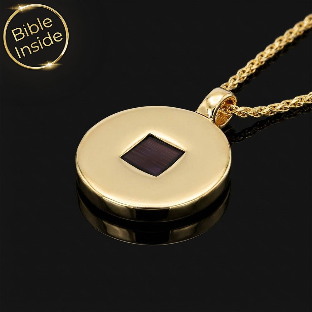 תליון עגול ונצחי עם כל ספרי התנ"ך – שרשרת זהב כמתנה מושלמת לבת מצווה