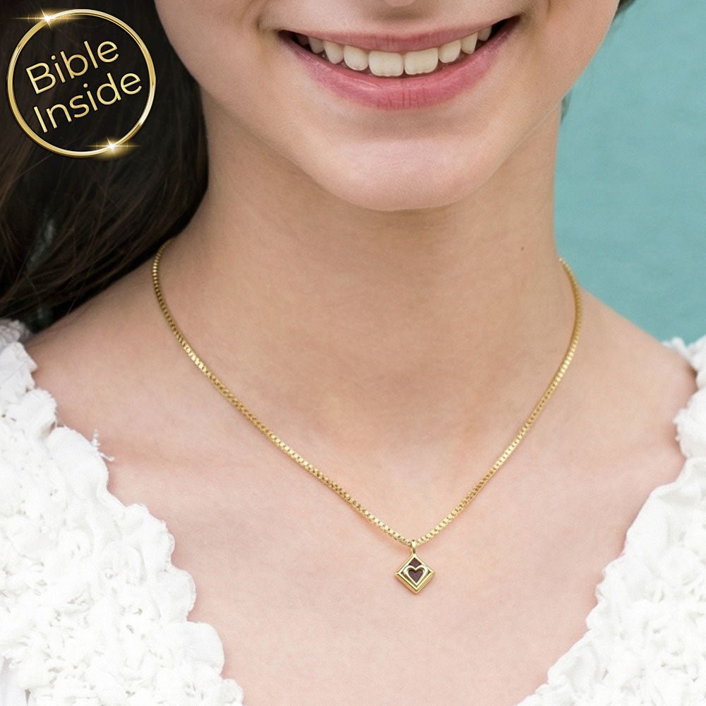 שרשרת לבת מצווה עם לב | תליון עדין עם ננו תנ"ך - דגם נגיעת אהבה