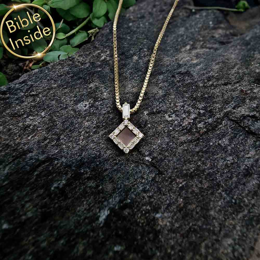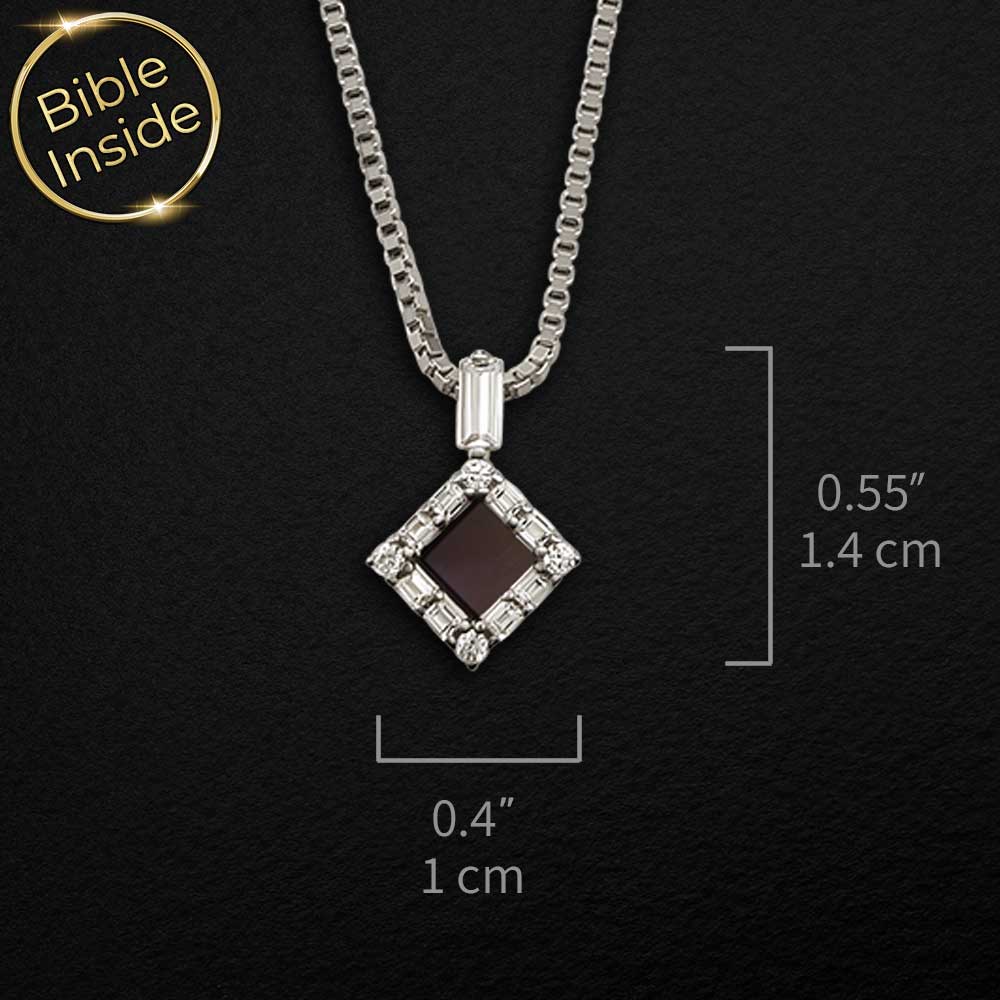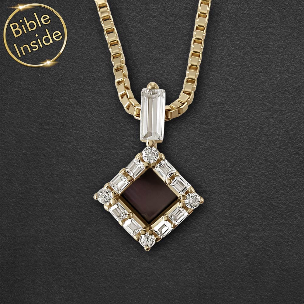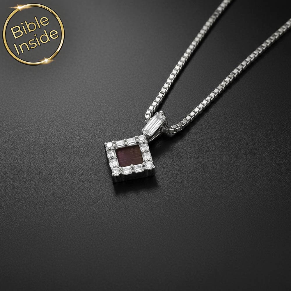 מחפשים תליון מיוחד לבת מצווה שישאר איתה לכל החיים? התליון הזה משלב עיצוב מעוין מרהיב עם תוכן רוחני עמוק. זירקונים בחיתוך באגט ועגול מקיפים את המרכז. בלב התליון משובץ שבב ננו תנ"ך זעיר עם כל 24 ספרי התנ"ך.