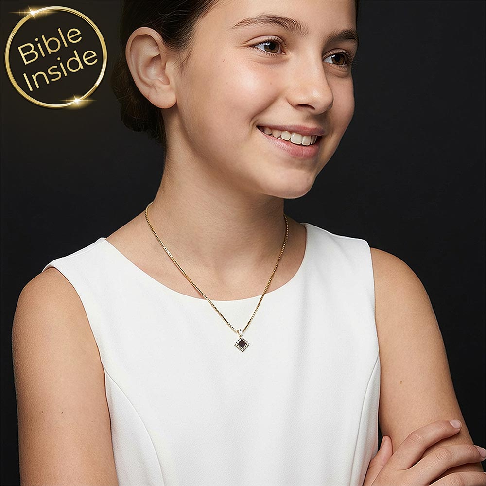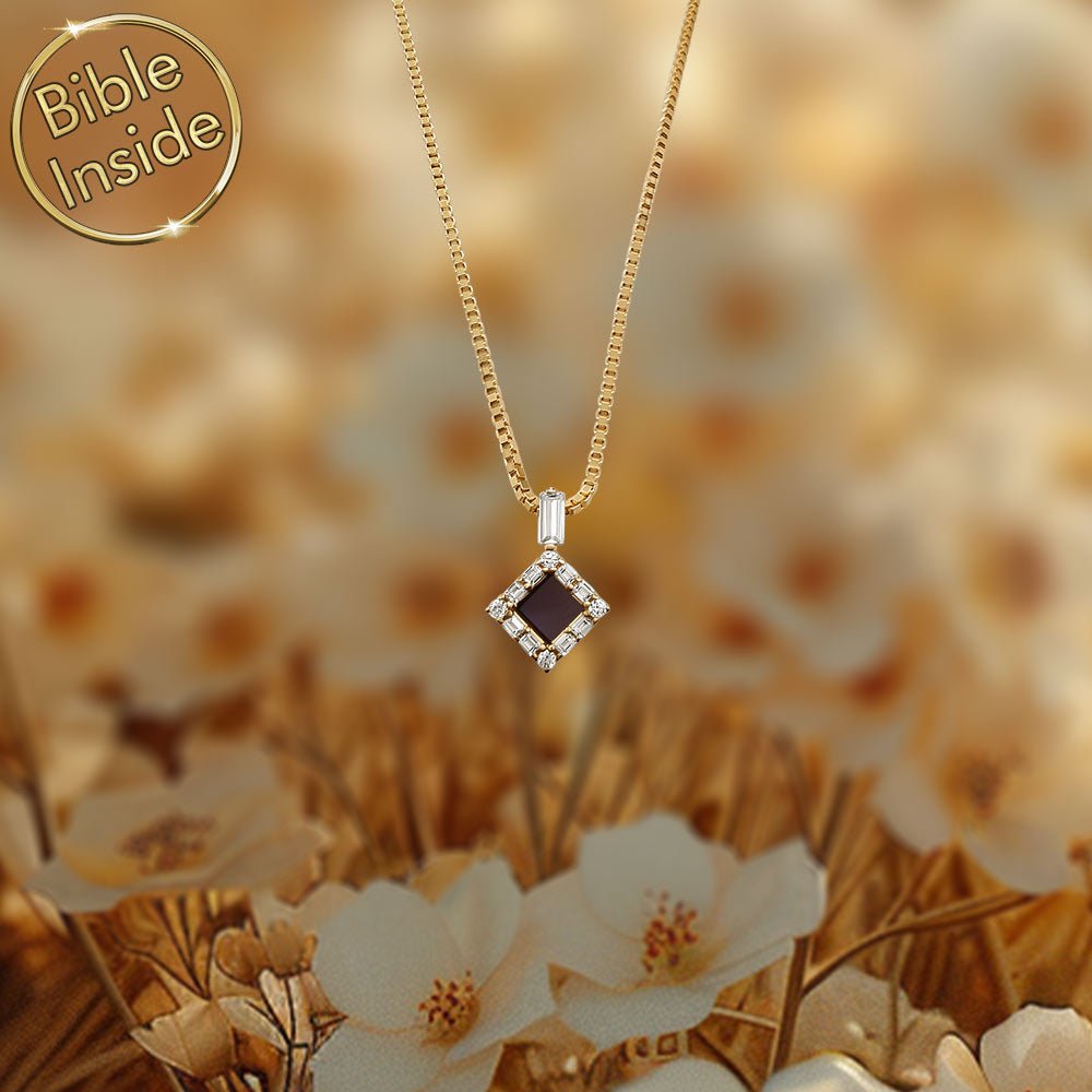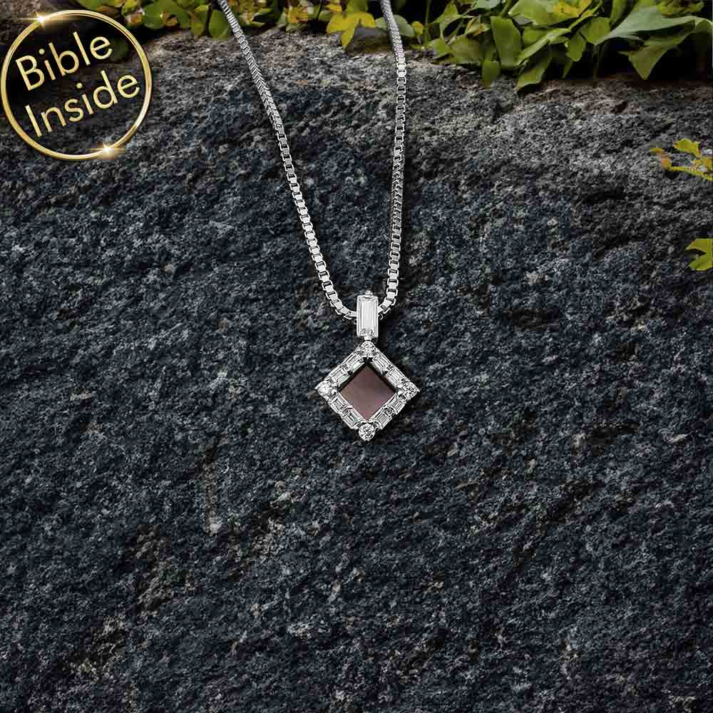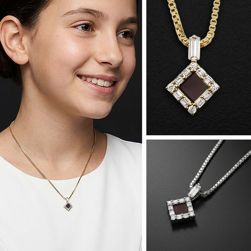 מחפשים תליון מיוחד לבת מצווה שישאר איתה לכל החיים? התליון הזה משלב עיצוב מעוין מרהיב עם תוכן רוחני עמוק. זירקונים בחיתוך באגט ועגול מקיפים את המרכז. בלב התליון משובץ שבב ננו תנ"ך זעיר עם כל 24 ספרי התנ"ך.