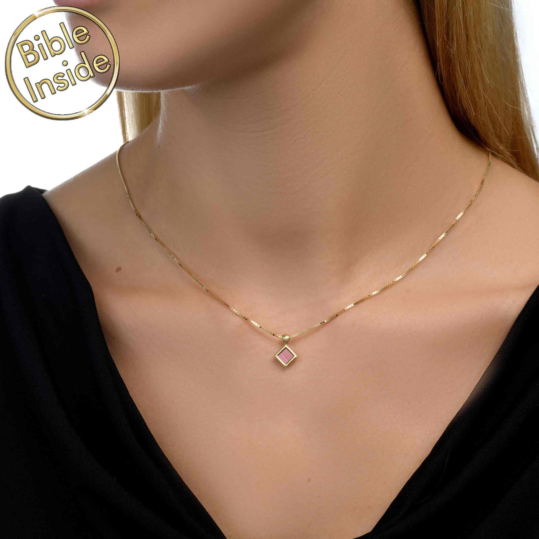 קולקציית התכשיטים לאישה עם ננו תנ"ך שלנו כוללת שרשרת מעודנת לנשים שהיא האביזר המושלם לכל בגד. שמרי את התנ"ך קרוב לליבך עם תכשיט ייחודי זה הכולל את כל 24 ספרי התנ"ך חרוטים על ריבוע של 0.5 ס"מ.