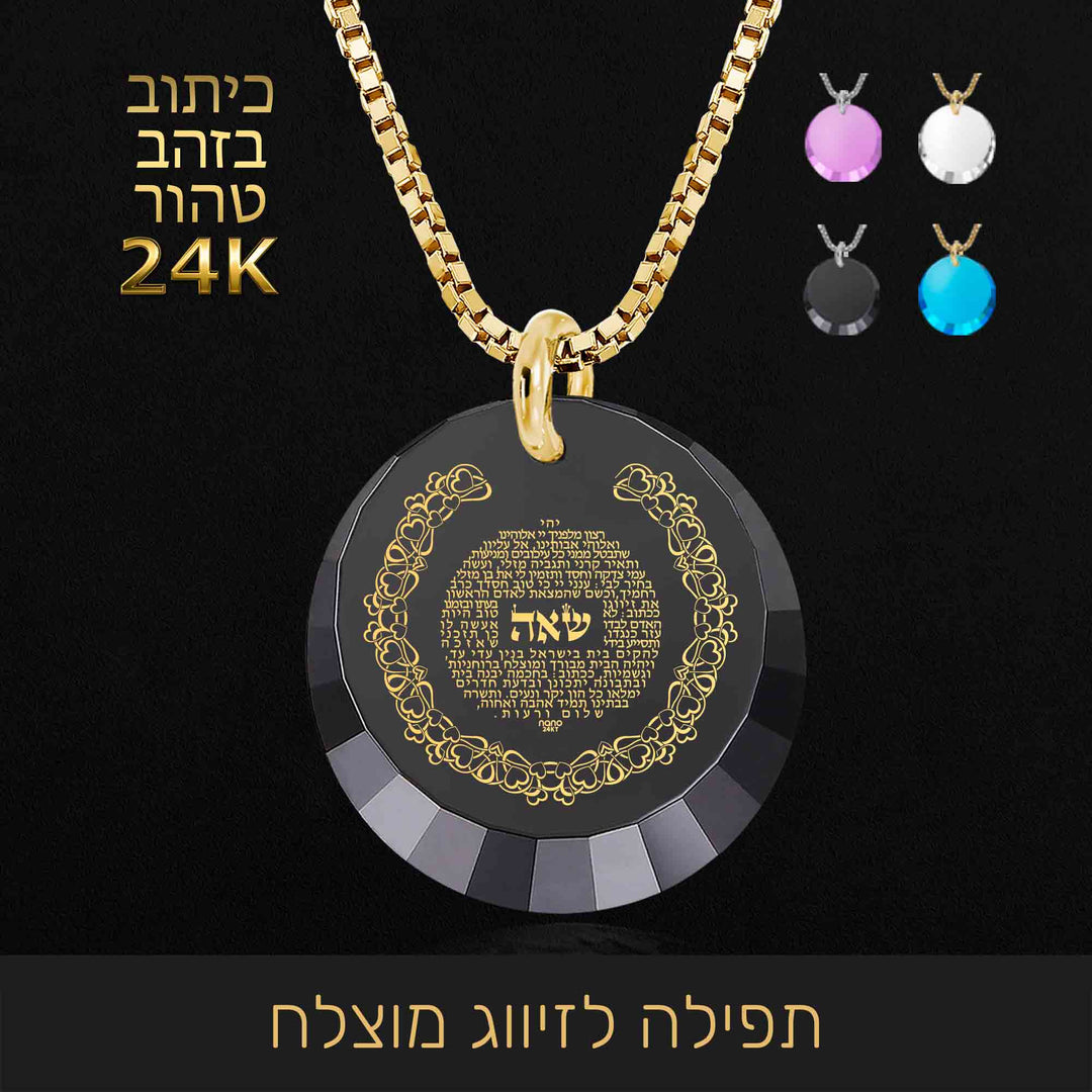 תליון ייחודי ומרגש המשלב אבן זירקוניה בחיתוך מיוחד ועליה כיתוב של "שאה" – צירוף אותיות מהקבלה - ותפילה יפה לזוגיות שלמה.
