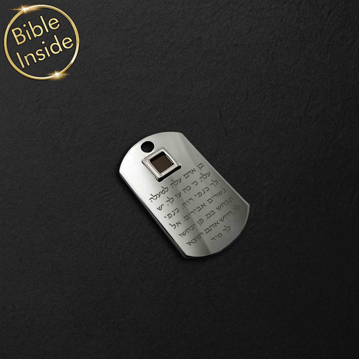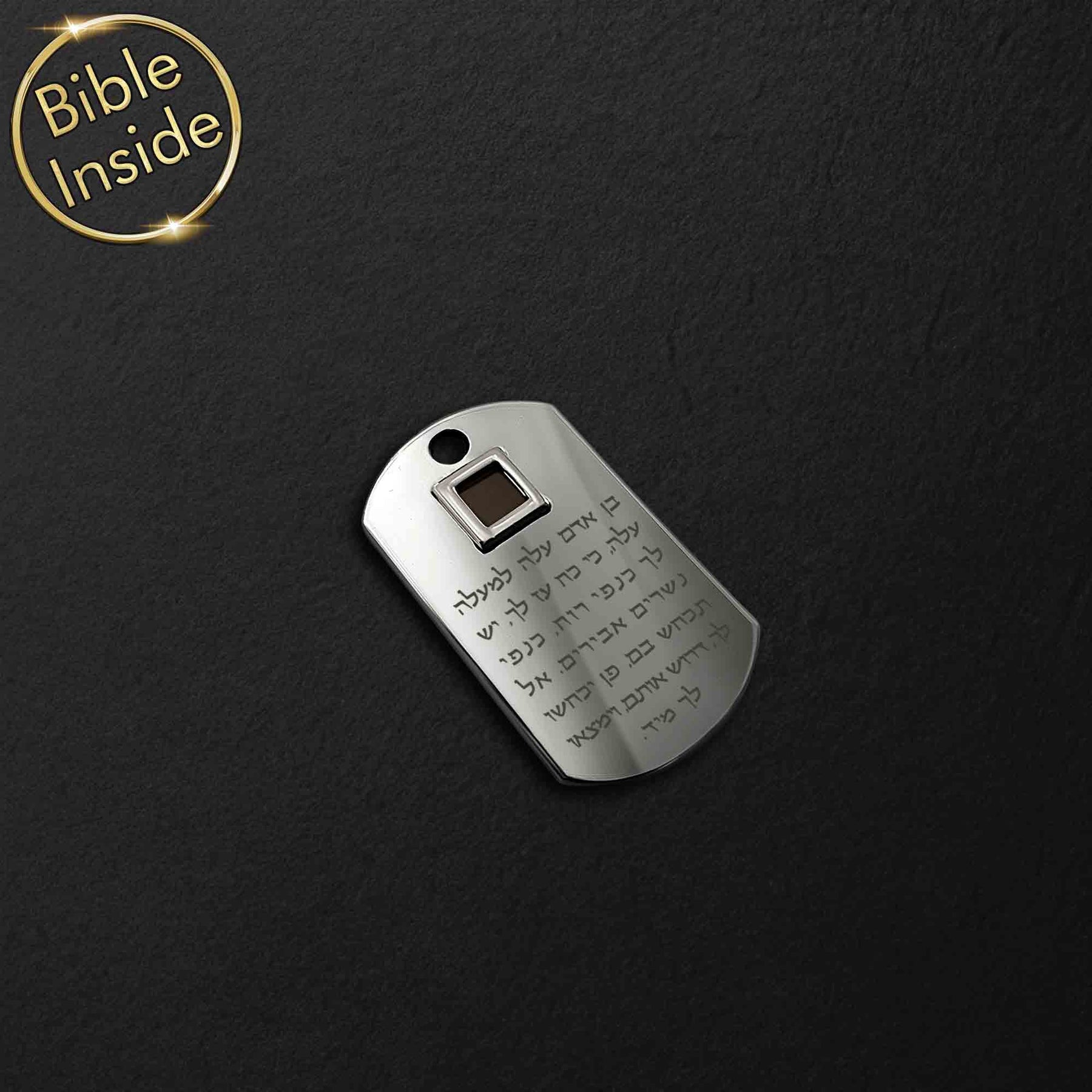 כאשר בנכם ילחץ על הדיסקית במהלך אימון מפרך או משימה מאתגרת, הוא יחוש את האהבה והתמיכה שלכם מלווים אותו. מתנה לחייליים זו משלבת טכנולוגיה מתקדמת עם מסורת עתיקה - התנ"ך כולו חרוט על שבב זעיר בגודל 0.5 ס"מ, הנראה רק תחת מיקרוסקופ מטלורגי בהגדלה של פי 1000.