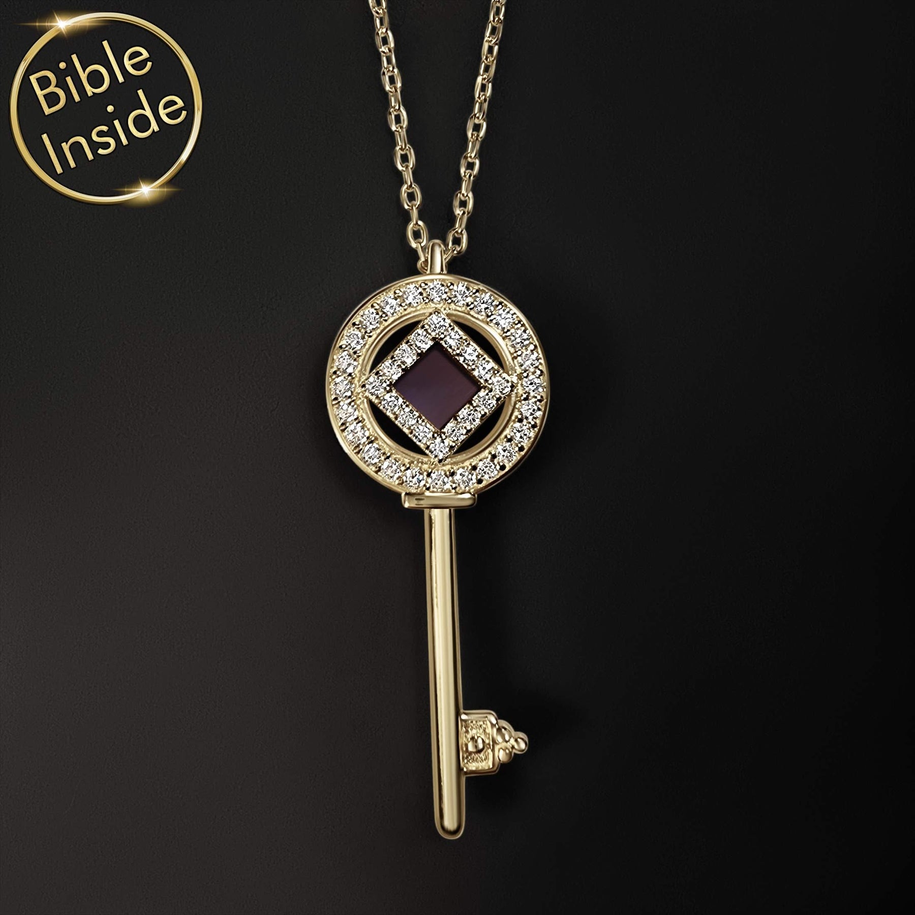 גלה מתנה לחג שובת לב לאישה האהובה המשלבת באופן מופלא אופנה ורוחניות. שרשרת מפתח מדהימה זו מתגאה בזירקוניות נוצצות, המשדרות אלגנטיות וסגנון. אבל יש יותר ביצירה המופלאה הזו – היא מחזיקה את התנ"ך כולו בתוך שבב ננו תנ"ך זעיר בגודל 0.5 ס"מ מרובע, סמל לחיבור עמוק לשורשים ולרוחניות שלכם.