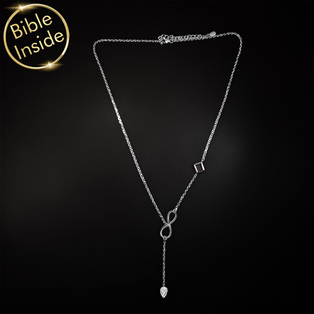 שדרגי את הסגנון והרוחניות שלך עם שרשרת האינפיניטי המיוחדת שלנו. יצירה מדהימה זו, שעוצבה עבור האישה המודרנית שמעריכה אופנה ומשמעות, משלבת את סמל האינפיניטי עם הפלא של הננו תנ"ך.