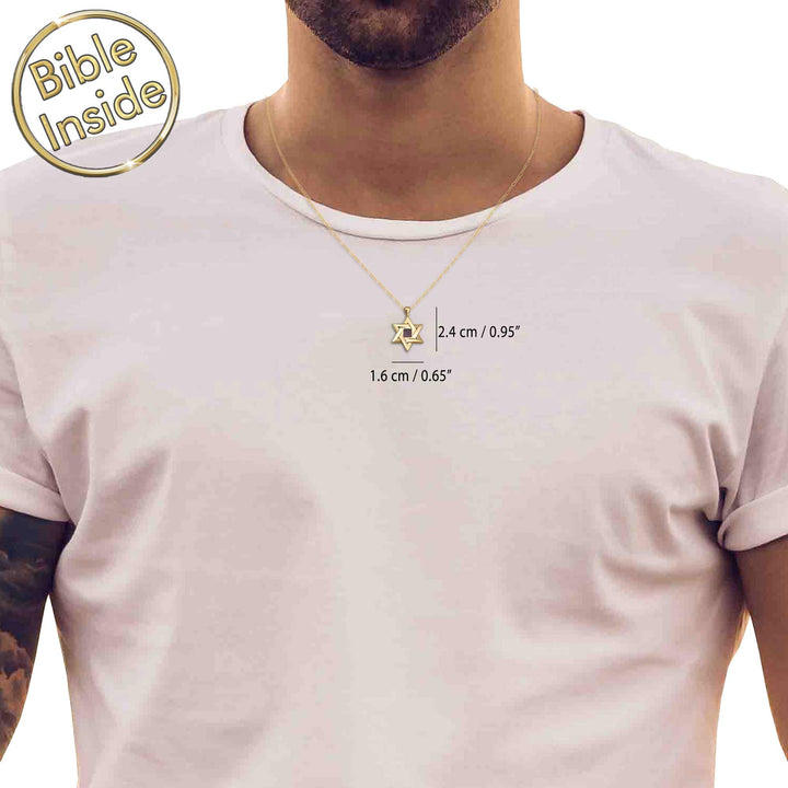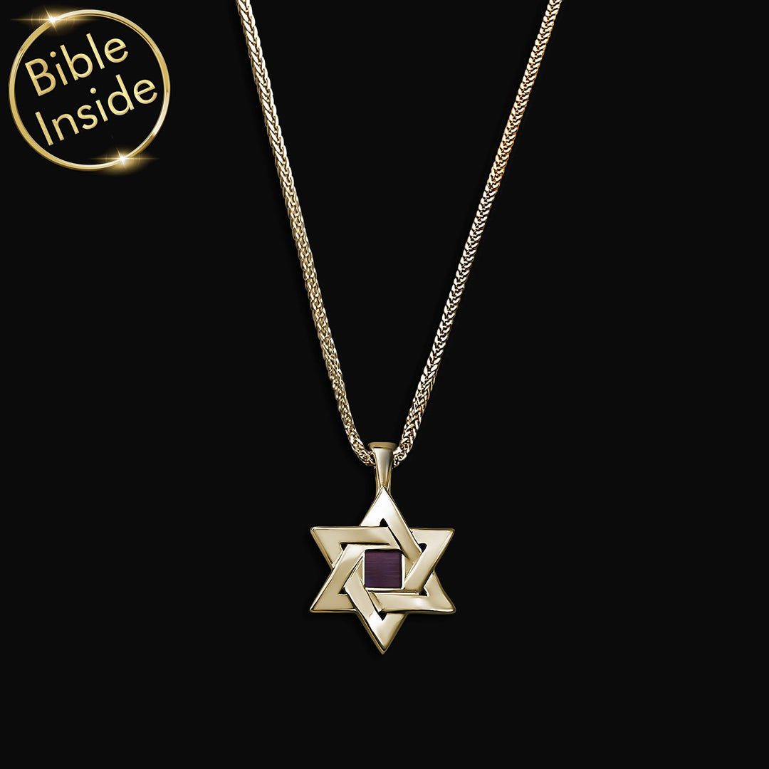 גלה את העוצמה של נשיאת מגן דוד זהב המשלב את התנ"ך השלם - תכשיט שהוא מעבר לזמן ומקום!