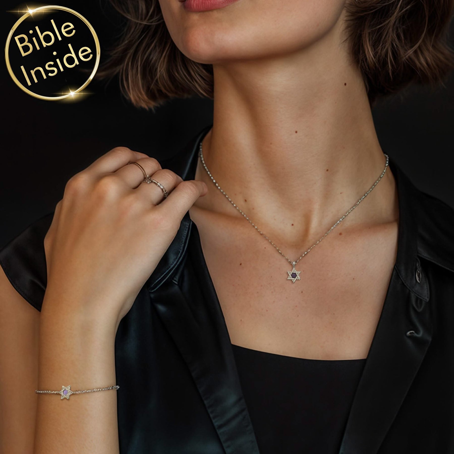 חיבור עמוק למסורת ולאמונה עם שרשרת מגן דוד לאישה המשלבת את התנ"ך כולו