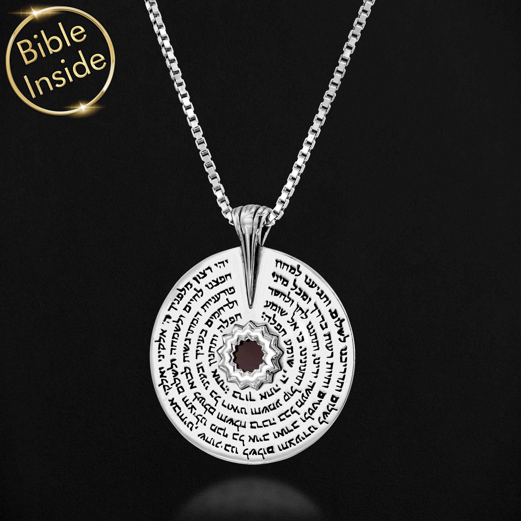 ♦ שבב התנ"ך מחובר אל השרשרת תפילת הדרך באמצעות שיבוץ (להבדיל מהדבקה). באופן זה, התנ"ך מוגן לחלוטין מפני נפילה מהתליון. כמו כן, התכשיט מותר במגע עם מים ללא כל חשש.